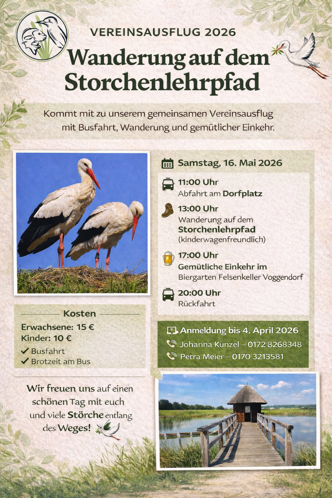 Vereinsausflug Storchenlehrpfad Posted on17. März 202617. März 2026AutorpaechtergemeinschaftHinterlasse einen Kommentar